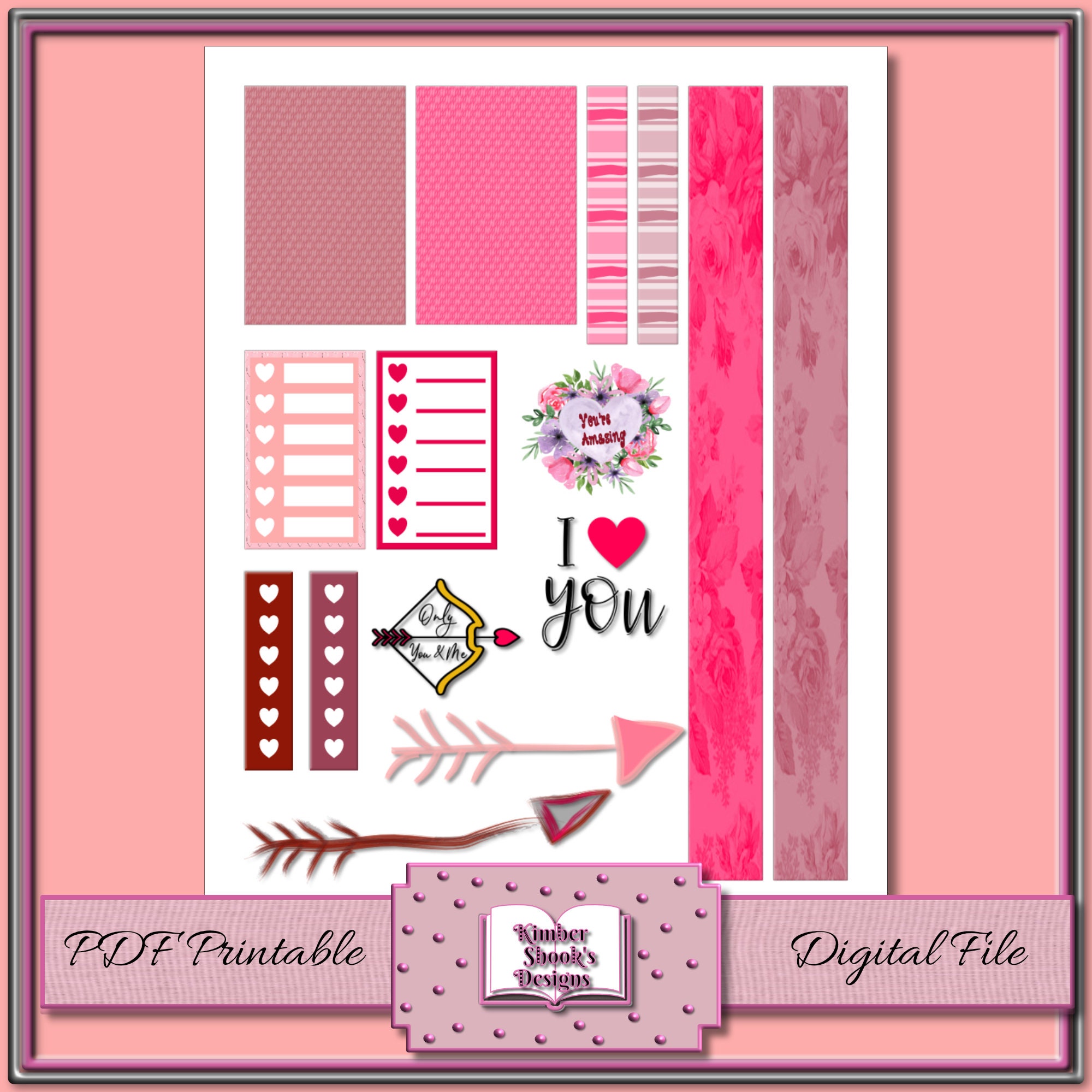 Unique Valentine's Day Printable Label Assorted, Valentine Tag, Sticker, Pink Heart, Label PDF ...