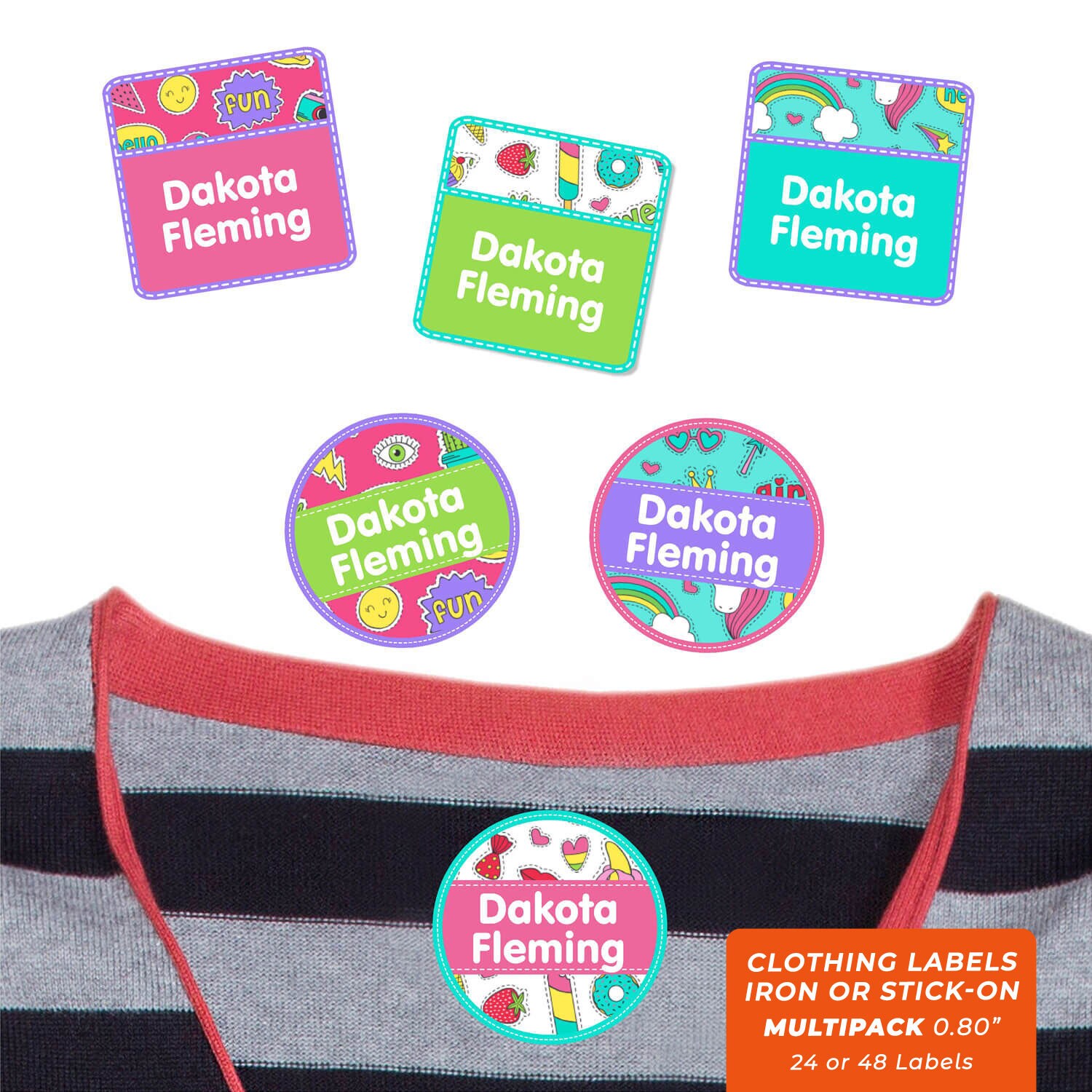 Stick/Iron-On Name Labels | Namelabels Stick/Iron-On Name Labels for clothes and equipment, Fill out one or more lines of text, Choose a design, Choose a theme, 120 Stick-On Labels Label a variety of your kids' clothing, shoes, school supplies and belongings with our personalized, easy-to-use Stick-On Labels, 24.95 $22.95, 120 Iron-On Labels No tag? No problem!