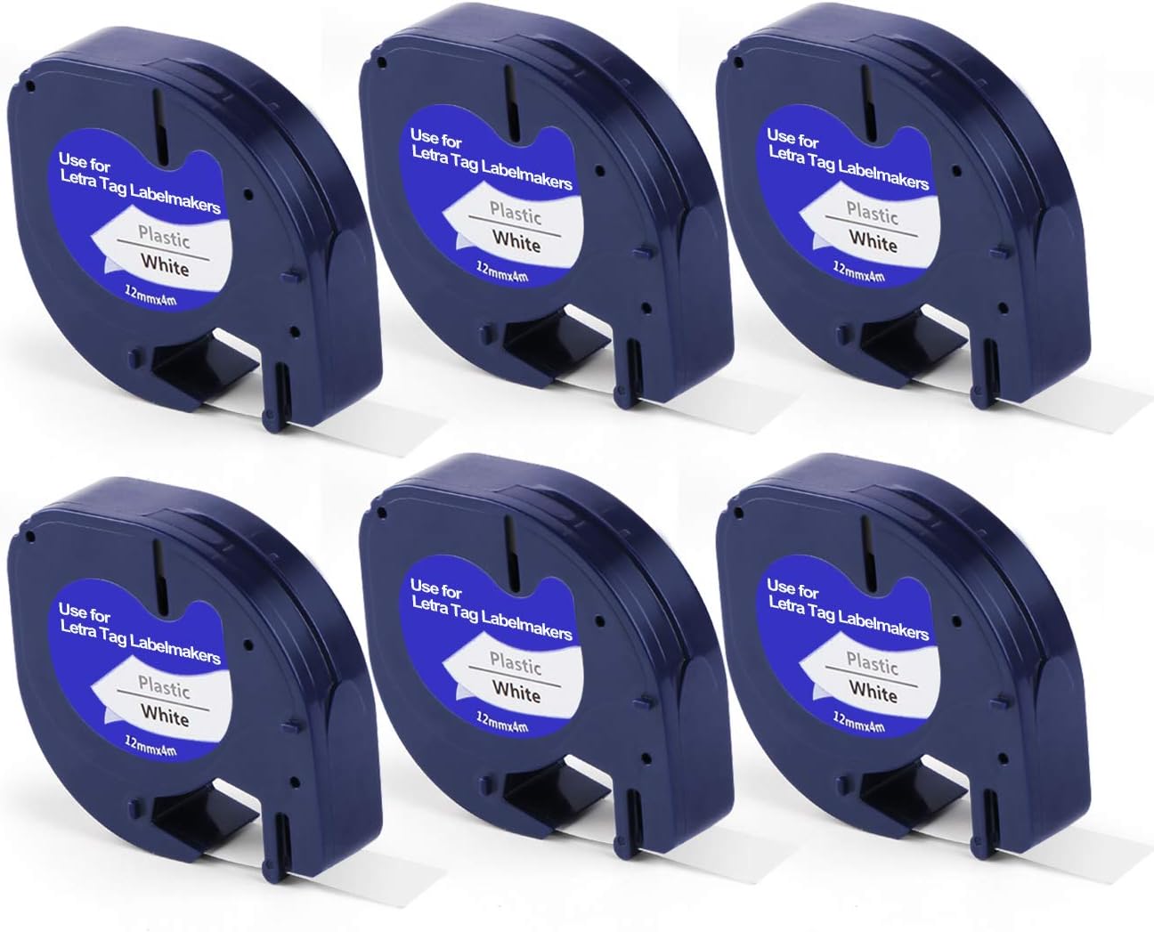5PK Compatible for DYMO LetraTag Refills 91331 (S0721660) LT91331 LetraTag White Plastic Label Tape 12mm x 4m for DYMO LetraTag LT100H LT100T LT110T ...