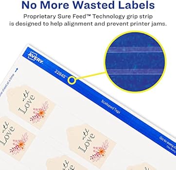 Avery Printable Blank Scallop Gift Tags with Sure Feed, 2" x 1.25", White, 180 Customizable Tags with Strings (22848)